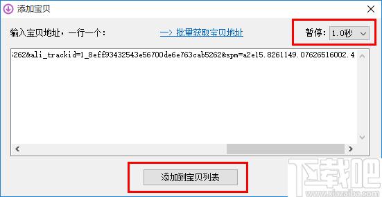 4、将复制的地址粘贴到输入框中,支持批量导入地址,一个宝贝一行,可设置暂停时间。
